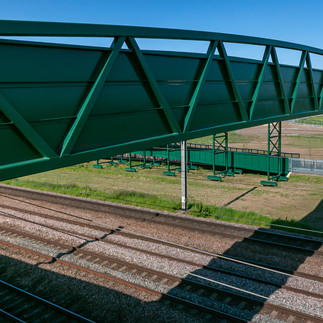 Construction of the fully accessible bridge began in December 2022. Designed for pedestrians, horse riders, and cyclists, the bridge improves community connectivity and promotes active, sustainable travel. Rising eight meters above the tracks, the bridge features ramps approximately 185 meters long on each side, serving as a key link for Biggleswade’s Green Wheel, a popular walking and cycling route around the town's outskirts.